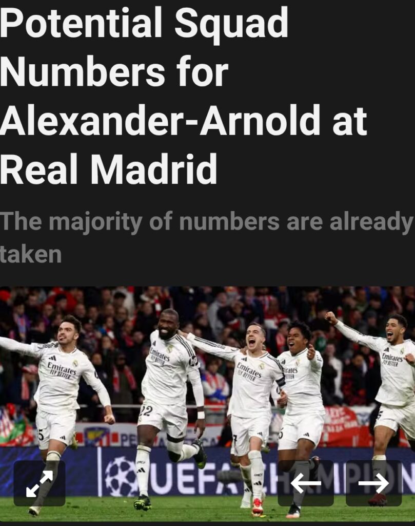 At the time of writing, there are only three squad numbers available to Alexander-Arnold at Madrid – all of which he has never worn previously in his career. The number 12 is the lowest number free; however, it is also the last one likely to be taken. While it isn’t a specific rule, most La Liga clubs leave the number 12 free to show respect to their supporters, often referred to as the 12th man.