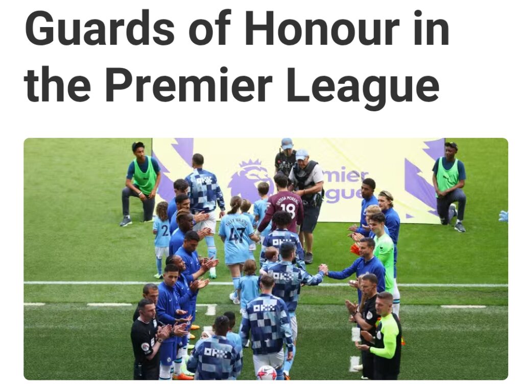 There have been some famous examples of the ‘Guard of Honour’ being given in the Premier League era. Notably, there were frosty moments between Manchester United and Chelsea when the two teams stacked up league titles in the early 2000s. In Jose Mourinho’s first season as the Blues manager, he won the league with three games to spare. In the penultimate match of the campaign, they travelled to their Manchester rivals at Old Trafford as champions. On X (formerly Twitter), Gary Neville famously said that giving a guard of honour in 2005 was:”Like your Mrs leaving you and being asked to hang the new bloke’s clothes up in your old wardrobe!!”The former United defender begrudgingly applauded the Chelsea players onto the Old Trafford pitch, but they were roundly booed by the Red Devils supporters. Two years later, United won the Premier League title ahead of Chelsea. In a bizarre replication of events, United travelled as champions to Stamford Bridge for the penultimate game of the season. As a result, the favour was returned, and the United players were given a guard of honour by Chelsea. The match finished 0-0 with both managers fielding makeshift teams ahead of the FA Cup final between the two teams, which took place after the league campaign.Perhaps the most infamous guard of honour was in the 2012/13 campaign. Robin van Persie had spent eight years with the Gunners before moving to Manchester in the summer of 2012. The decision was met with hostility from Arsenal fans, and over the course of the season, the Dutchman scored 26 goals and led Sir Alex Ferguson’s team to the title.