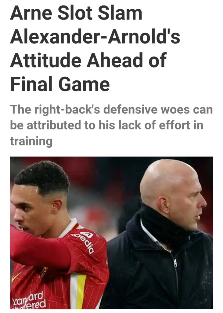 Liverpool manager Arne Slot has made a harsh remark regarding Trent Alexander-Arnold as he prepares for what will be the right-back’s last match for his childhood club this Sunday.
