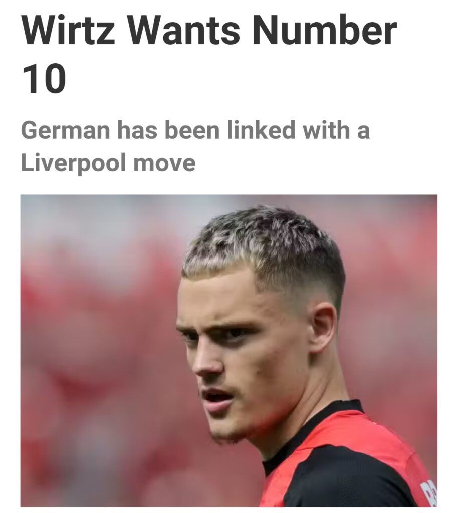 According to Florian Plettenberg of Sky Sports Germany, Wirtz has made a request for the number 10 shirt at Anfield.