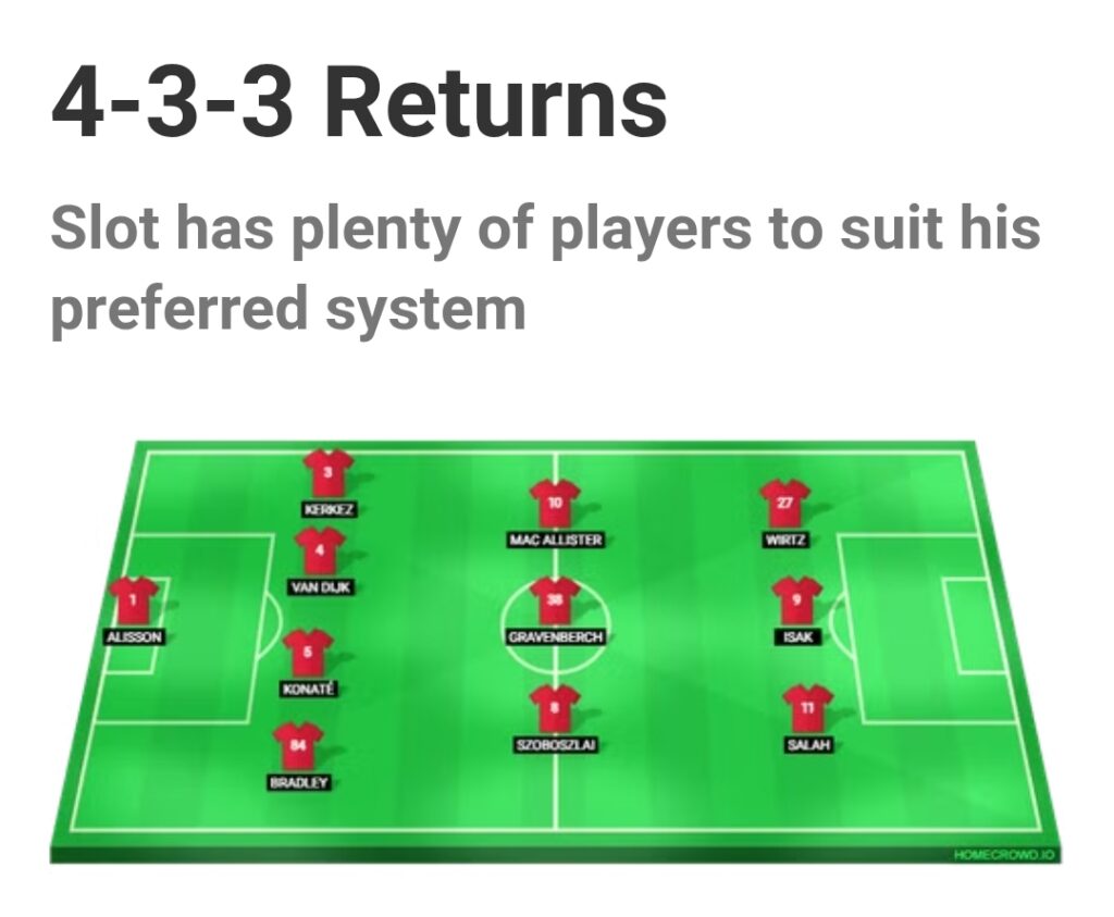 Certainly, it is quite possible that Slot believes, “If it isn’t broken, do not attempt to fix it.” In that scenario, the 4-3-3 formation may persist.
