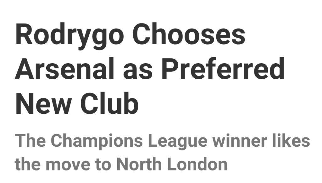According to a report from the Spanish outlet AS, Rodrygo has made it known to those close to the situation that if he were to be sold, his top choice would be to move to Arsenal over their Premier League competitors.