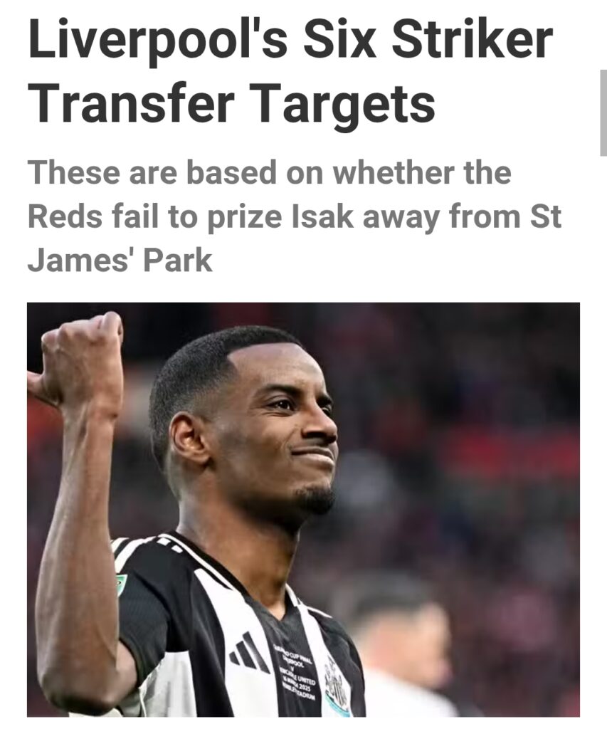 However, as reported by the Daily Mail, Liverpool is not relying solely on one option. The club is said to be monitoring six alternative striker candidates in case the Magpies are unwilling to let go of their most valuable player.