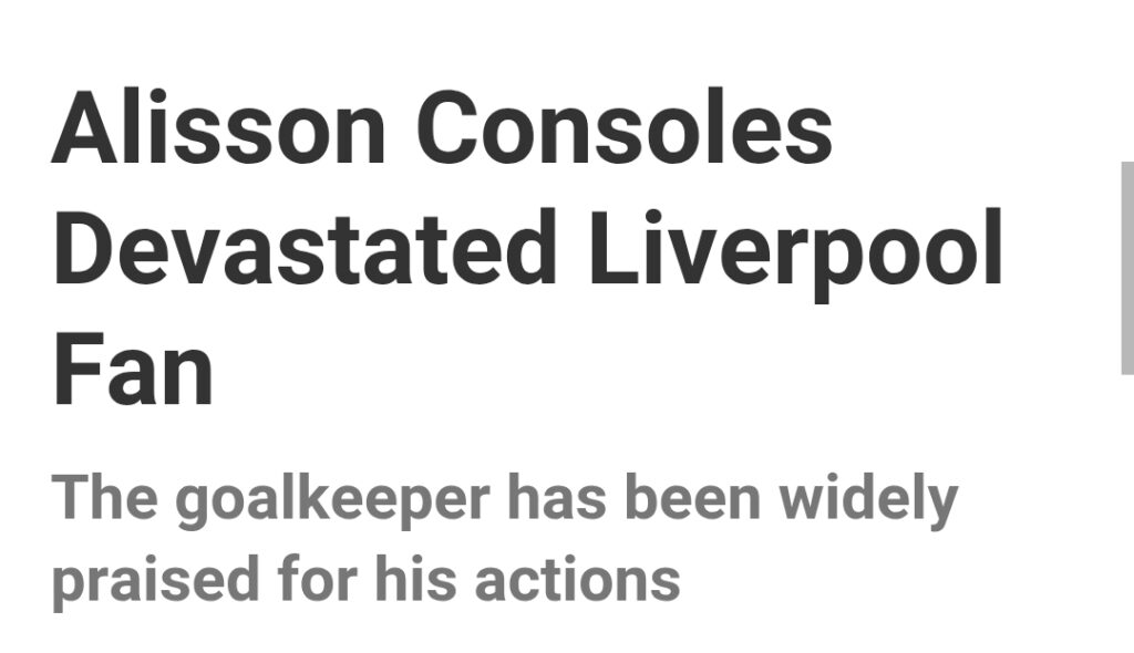 It is not surprising that the online response has been overwhelmingly favorable towards the 32-year-old, with many praising the Brazilian for taking the time, even amidst his own challenges in coping with the situation, to look after others. Alisson was unable to attend Jota’s funeral just days after his passing, but he later participated in the seventh-day mass for the striker, accompanied by teammate Luis Diaz.