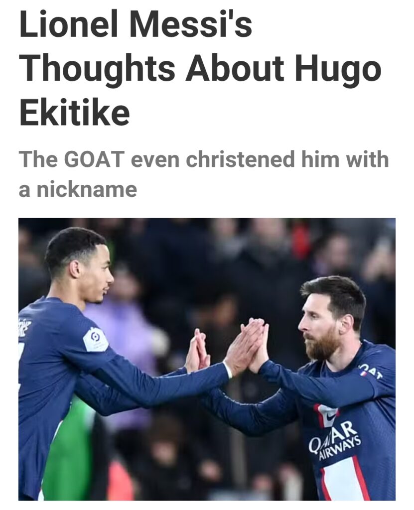 Ekitike departed from the Parc des Princes to join Eintracht Frankfurt in January 2024, having spent only 18 months and made 12 appearances in Ligue 1 for PSG. Ultimately, he was unable to displace Neymar, Kylian Mbappe, and Messi from the attacking lineup, which was not unexpected. Nevertheless, the France U23 international left a notable impression on Messi during training.According to L’Equipe in 2022, Messi developed a fondness for Ekitike while in Paris, affectionately referring to him as the “iron rod” due to his slender physique and surprisingly quick pace.