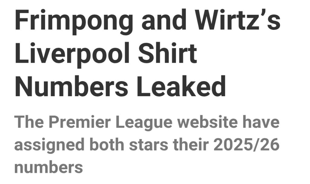 Currently, the supporters of Anfield believe they have insight into the shirt numbers that both Wirtz, 22, and Frimpong, 24, will be sporting from the upcoming season onward. The Premier League website, which lists every shirt number for all 20 teams in the English top division, has leaked this information.
